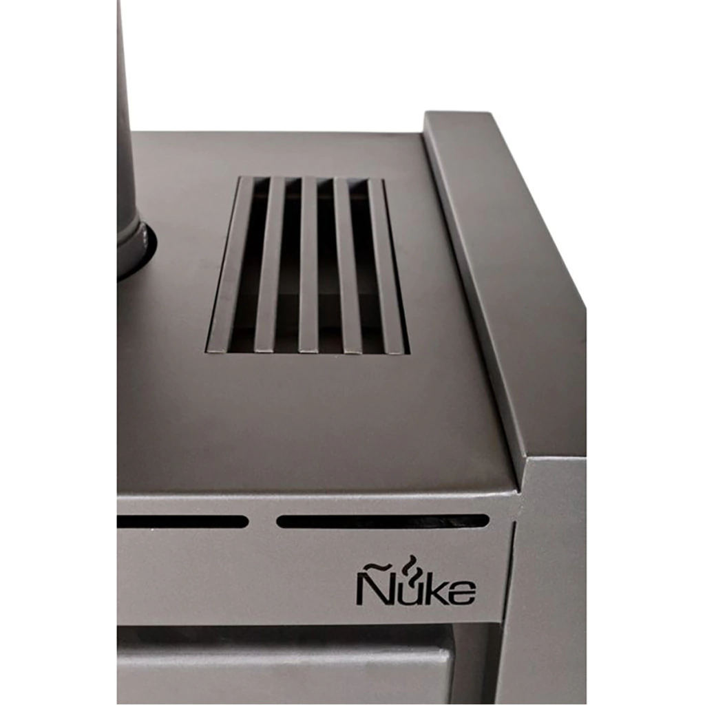 Recubierto completamente con refractarios en su interior, este equipo cuenta con dos cámaras de combustión que queman todos los gases, eliminando humo y olores, y logrando un alto rendimiento de biomasa gracias a su sistema de doble combustión. Posee una gran visibilidad del fuego, entrada de aire vertical para limpiar el vidrio vitrocerámico, pintura de alta temperatura, cierre de puerta con cordón de fibrocerámica y bisagras ocultas. Genera calor por convección y radiación utilizando el eficiente sistema de combustión Ñuke. Su diseño de gran tamaño y estética armoniosa lo convierten en una pieza ideal para amplios ambientes.