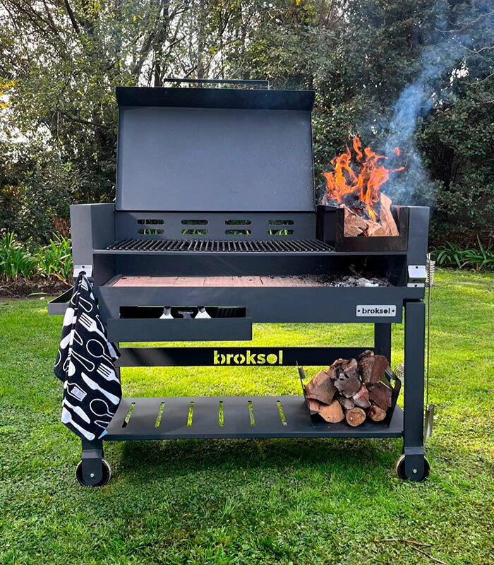 Disfrutá de asados perfectos con la Parrilla Móvil. Incluye un práctico fogonero, plancha bifera y tapa para mantener el calor. Su mesa desplegable y mesa de guarda inferior aumentan la funcionalidad. Fácil de mover gracias a su manija lateral y ruedas. Con ladrillos refractarios y emparrillado enlozado, garantiza una cocción ideal. Incluye soporte para set de asador.